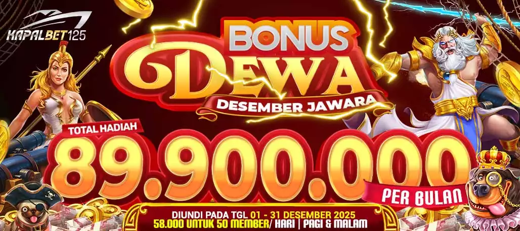 Inilah kesempatan emas yang tidak boleh Anda lewatkan! KAPALBET125 ada kejutan BONUS DEWA ( Desember Jawara ) dengan membagikan hadiah total Rp 2.900.000,- setiap harinya kepada 50 member beruntung! 🤩✨